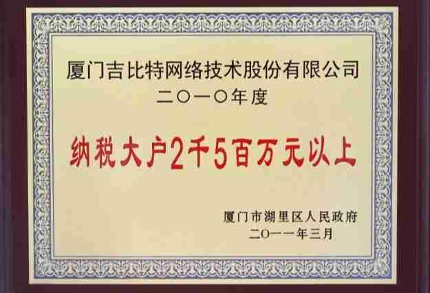 日前,,,公司被厦门市湖里区人民政府授予了“2010年纳税大户”的荣誉称号,,,,充分体现了公司一贯合法纳税、、、诚信经营的良好企业社会公民行为。。。